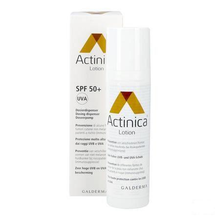 De lotion is speciaal ontwikkeld voor mensen die een hoog risico hebben om huidkanker te ontwikkelen als gevolg van blootstelling aan UV. Actinica Lotion SPF50+ heeft een zeer hoge beschermingsfactor en biedt een zeer hoge UVA- en UVB-bescherming voor de huid die eerder beschadigd is door UV straling.