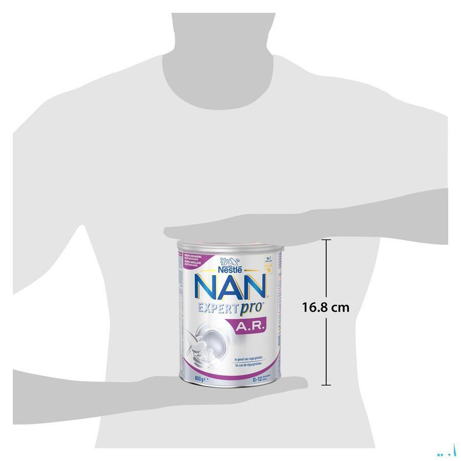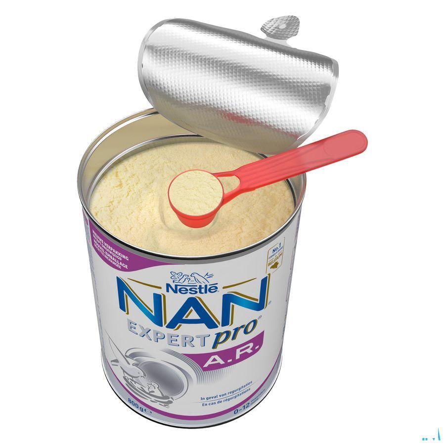 NAN AR is een melk met gedeeltelijk gehydroliseerde eiwitten die ontwikkeld werd op basis van Nestlé-onderzoek en verrijkt met zetmeel om te beantwoorden aan regurgitatieproblemen.
