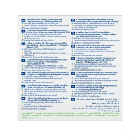 Medicijnvrije thermotherapie Gebruik koudetherapie bij kiespijn na tandheelkundige chirurgie; acuut letsel zoals blauwe plekken, verstuiking en kleine builen; neusbloedingen; zwellingen na injecties en insectenbeten; of om koortssymptomen te verlichten Gebruik warmtetherapie bij maagpijn (verlichten van buikspierkramp) of voor het verwarmen van de handen Herbruikbaar kompres met niet-giftige gel – veilig voor het hele gezin Bevat geen natuurlijk rubberlatex Eenheden per verpakking: 2
